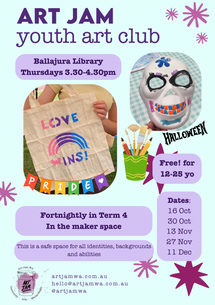 Come find the Art Jam stall where you can pick up a free tote bag and print it yourself!